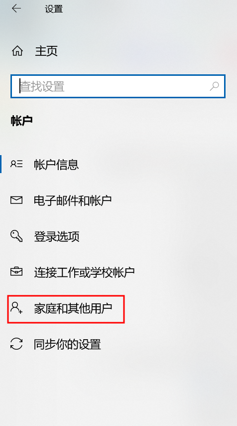 ③在左边的菜单中 选择“家庭和其他用户”