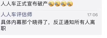 今日,有网友在微博爆料:人人车正式宣布破产,通知所有人离职。