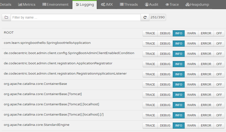 logging主要记录当前哪些类有日志记录的级别,info的有哪些,哪些类里面用的是info级别的