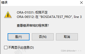 但是在存储过程中使用execute immediate执行ddl语句时,可能会报权限不足异常,如例: