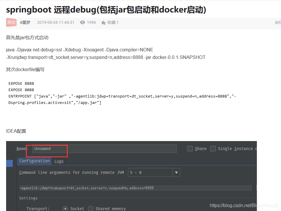 1、将本地程序跑起来,发现一切正常,可以插入到数据库。但问题在线上确实妥妥的出现的,而我现在日志级别是info,没有错误日志。所有准备Debug线上程序,之前只debug过使用基本的tomcat发布。而我现在的jar是使用docker构建的镜像,运行的镜像。 2、问题从线上转化到了,我需要远程debug线上程序发现问题,并将之解决。查各种资料,配置端口进行调试。从起开启各种踩坑之路。 首先百度到的基本上就这几种: