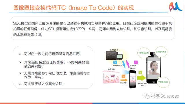 SDL模型在国际上最为关注的是可以通过手机就可以实现各种AI的应用。目前已经成功的是可将手机拍照的任何图像,经过SDL模型可生成10^36的二维码,还可应用到人脸识别,和语音识别,以及高精度的金融预测等领域。
