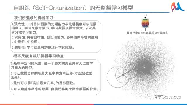 上图是我们所追求的机器学习,以及概率尺度自组织机器学习特点。