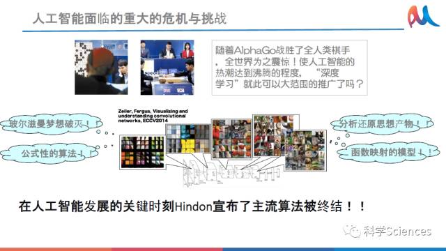 但是,我们出问题了,人工智能主流算法“深度学习”严重的破绽被发现了、深度学习发明者提出“我不干了”,这个可能在座的大家都知道。为什么他出现破绽?简单讲我是20多年前曾经解决过大规模集成电路的组合问题,确实也是当时从算法上找不到跟今天阿尔法GO同样的算法,通过概率、模糊关系,通过对抗学习,很成功的在当时仅16位的计算机上实现了相当大规模集成电路的组合。所以我今天看阿尔法GO其实就是一个算法,我们不要认为它是一个很神奇的东西,它所用的方法和二十多年前相差不了多少。所以我觉得我们还是有话语权的。