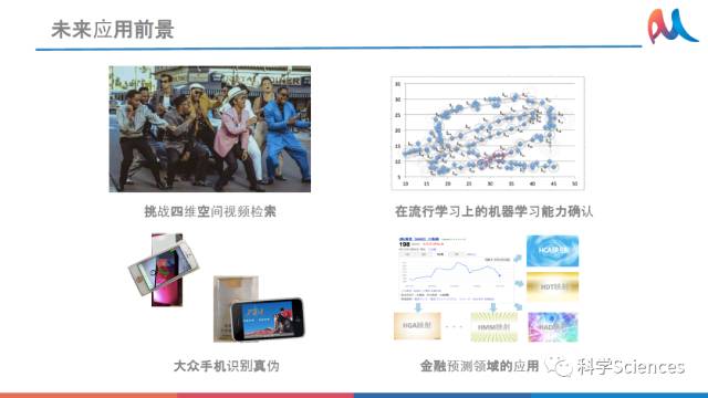 未来应用前景:挑战四维空间视频检索、在流行学习上的机器学习能力确认、大众手机识别真伪、金融预测领域的应用等方面。