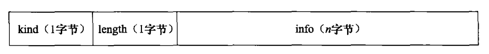 - kind:占1个字节。该字段是说明选项的类型。有的TCP选项没有后面两个字段,仅包含1字节的kind字段。