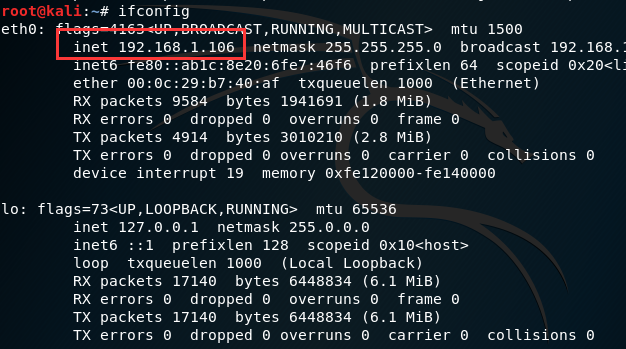2、输入ifconfig查看ip,复制js代码,并将ip改为本机ip,此时js代码如下: