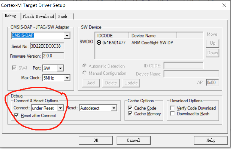 新到的板子下载程序总是出现错误(使用DAP仿真器SWD下载),但是复位以后开发板还是会执行上次拷进去的程序。