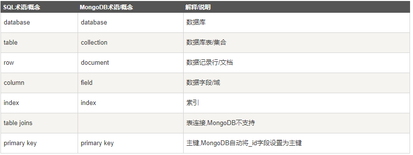 2,与sql概念的对比