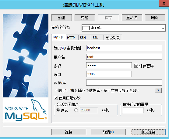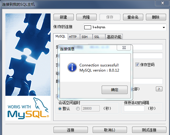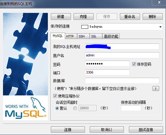二、客户端连接测试主机为服务器IP地址,用户名为新建的用户名,密码为新建用户名时输入的密码