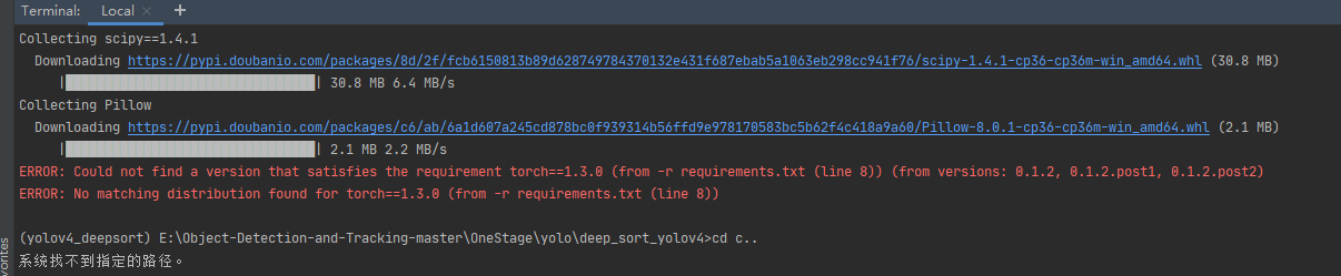 要先安装torch,再去安装torchvision,否则也会报错。下面以安装torch的命令为例,cmd进入你torch的whl存放的目录,然后执行下面的命令。