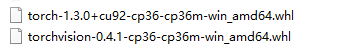 注意:还要根据你的python版本去下载,例如我的是3.6的版本,所以我选择cp36-cp36m,否则下错会提示你此whl不适用去此平台,torchvision同理。