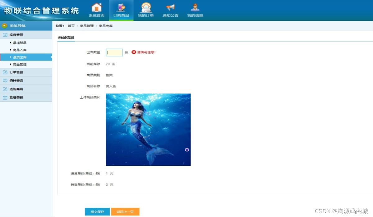 3、统计查询:入库查询、订单查询、销售查询、在库查询、退库查询。