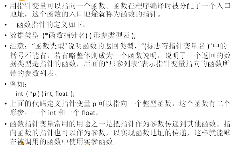 函数指针是指向函数的指针变量。在C中,每一个函数都有一个入口地址,该入口地址就是函数指针所指向的地址。