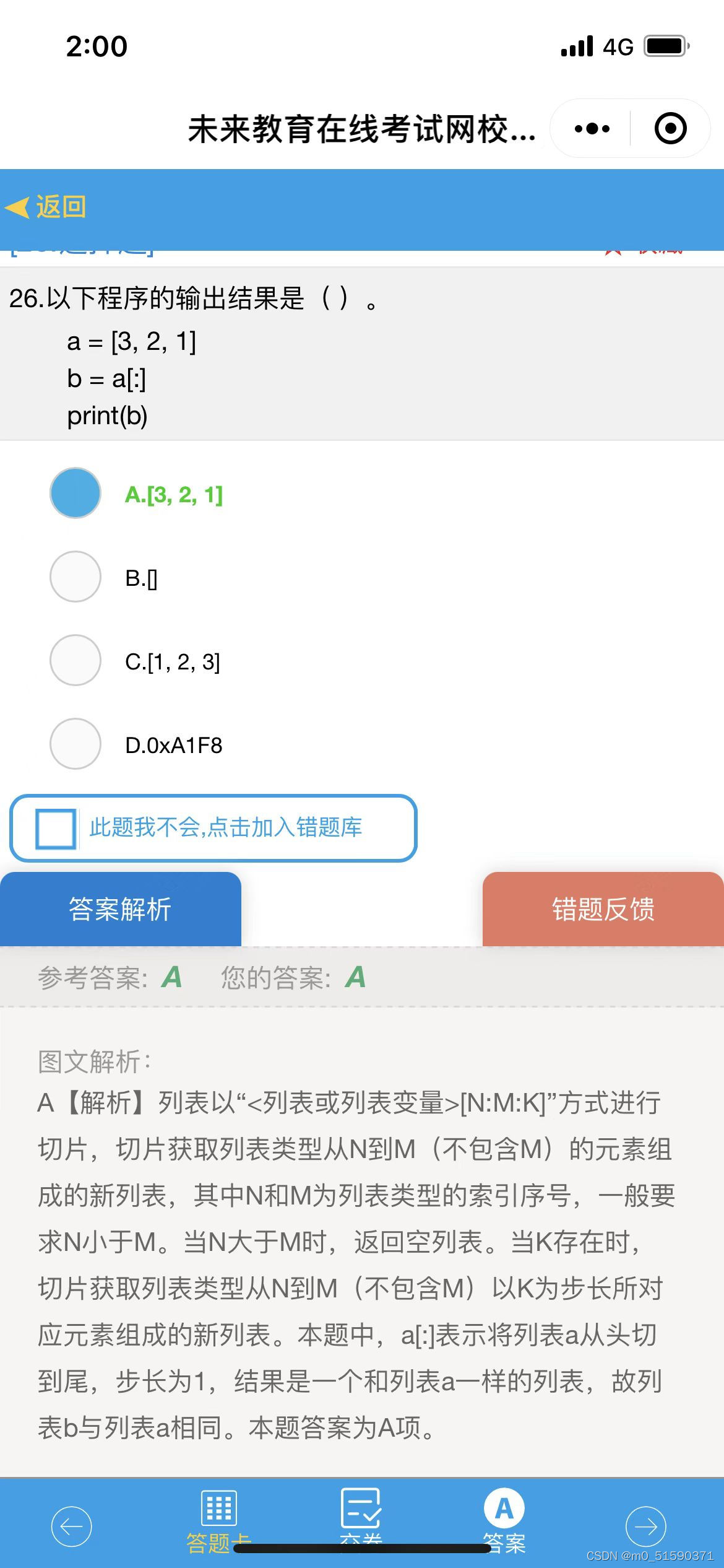 31、二维列表ls=[[9,8],[7,6],[5,4],[3,2],[1,0]],能够获得数字4的选项是?
