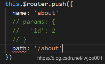2、路由配置带参数:首先,先确定个概念:跳转路由用name的时候带参数用params,用path的时候用query(router文件用,path未定义参数),除非用完整路径path