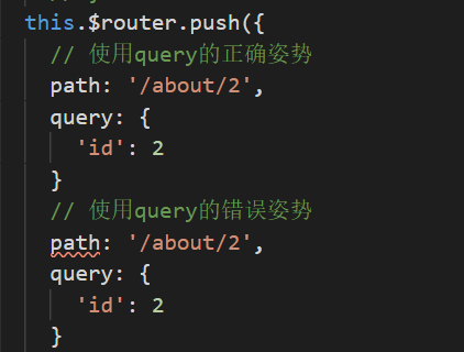 * 这里需要注意的事,当你钻牛角尖的时候,非要用query带参数的话,因为query跳转的时候使用path,因此跳转的时候需跟router文件上的path格式,否则将page not find。