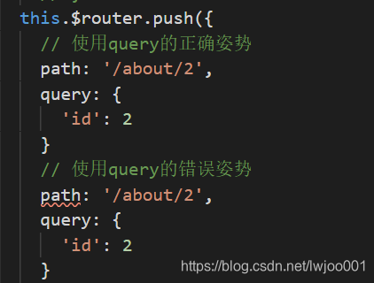 不同的是:当使用query时,页面的路由如下: