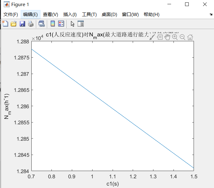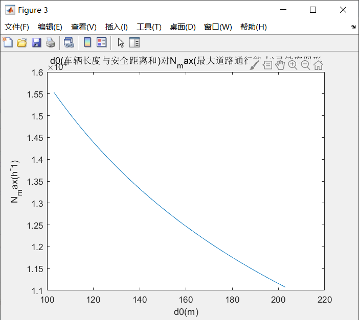 2.三个分析函数所要变化的参数设置为行向量,其余参数作为常数传入,通过计算函数获得最大道路通行能力的映射行向量,最后绘制最大的道路通行能力图