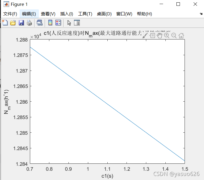title('c1(人反应速度)对N_max(最大道路通行能力)灵敏度图形')