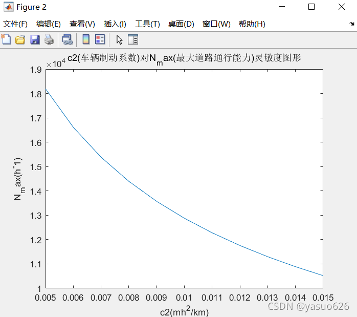 title('c2(车辆制动系数)对N_max(最大道路通行能力)灵敏度图形')