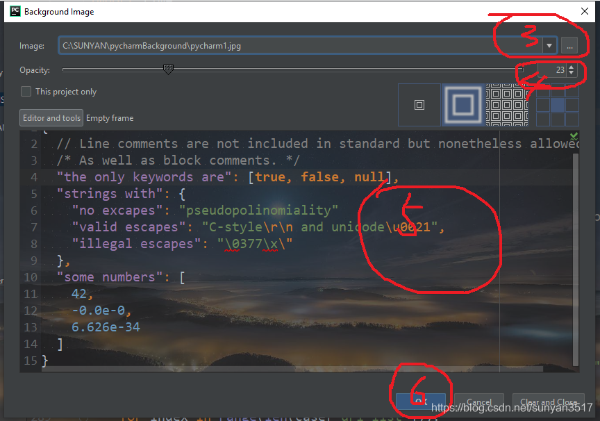 至此即可完成pycharm背景图片的设置和透明度的设置