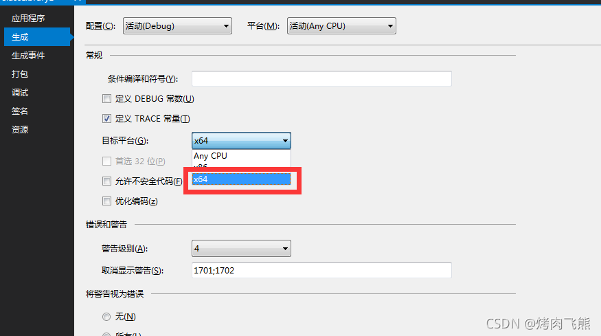 所生成项目的处理器架构“MSIL”与引用“***”的处理器架构“x86”不匹配。这种不匹配可能会导致运行时失败。请考虑通过配置管理器更改您的项目的目标处理器架构,以使您的项目与引用间的处理器架构...
