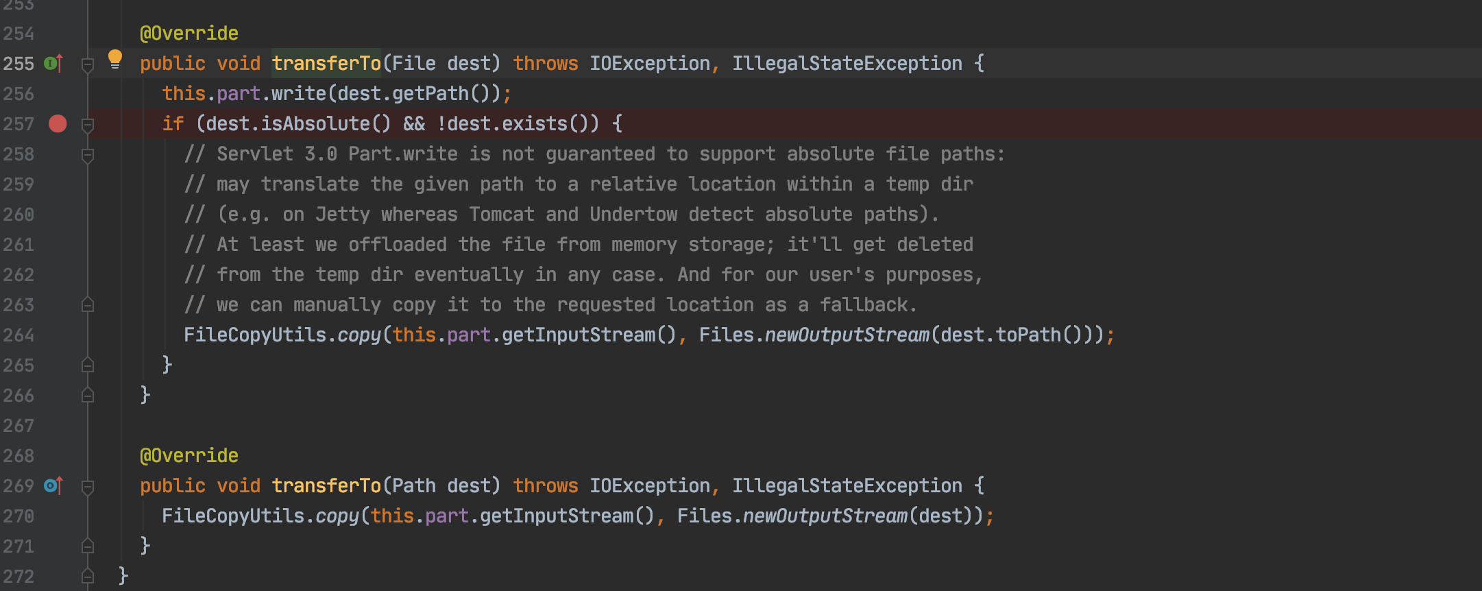 FileCopyUtils.copy(this.part.getInputStream(), Files.newOutputStream(dest));