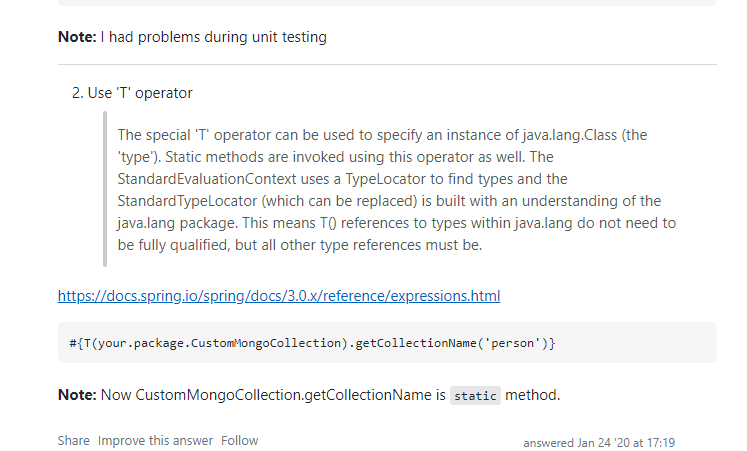 大概的意思是要在spEL表达式中使用 T(包的全限定名).方法名 这种静态调用的方式。