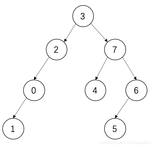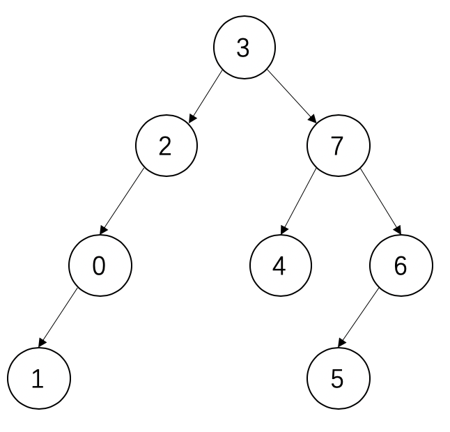 用该方法的一个好处就是可以很容易地从无序的输入确定根节点是谁。可以发现,该数组的长度为8,因此下标是0~7,从头遍历图中数组,可以发现0~7这些下标中,3没有出现,因此说明没有任何一个结点的子树指向下标3对应的结点,即下标为3对应的结点为该树的根节点,即图中的下标3对应的结点3。建立二叉树