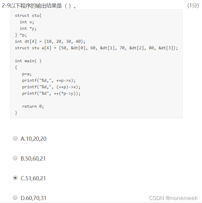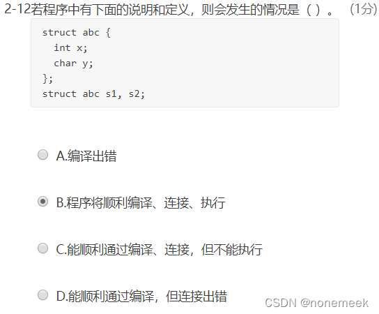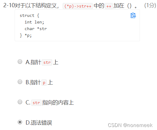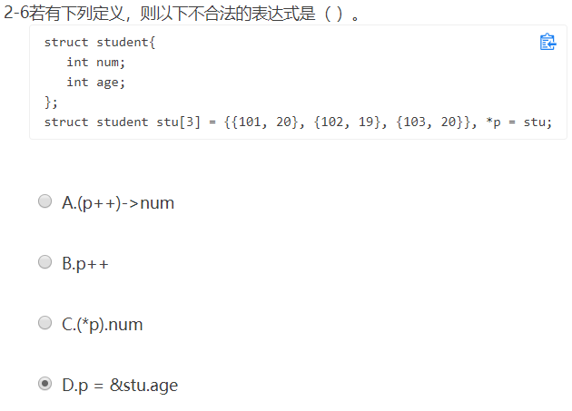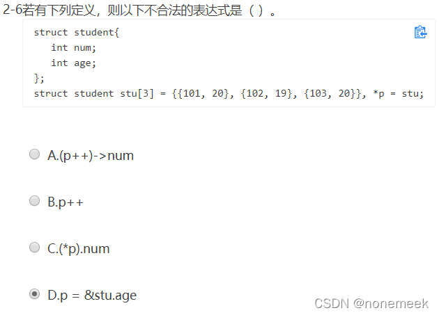 所以D不合法的原因是将成员变量的地址赋给了结构体变量指针?尝试编译