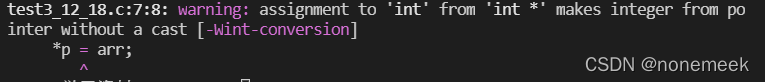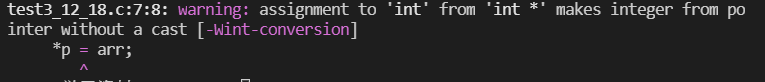 结果它报错,大致意思为将一个地址(或指针变量)强行赋值给int型变量(*p),得进行强转