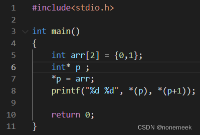 那么*p = 0, *(p+1) = 1;它等同于,arr[0]和arr[1];