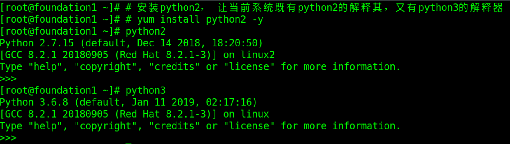 1.rhl8中Python3可以直接使用,建议安装Python2