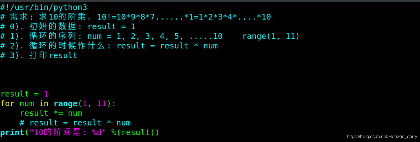3.for循环计算10的阶乘