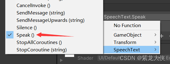 例如:在按钮点击处赋上预制体,然后选择对应speak方法便可!