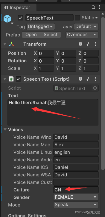 speechtext 需要在属性中编辑你要阅读的文字,如下: