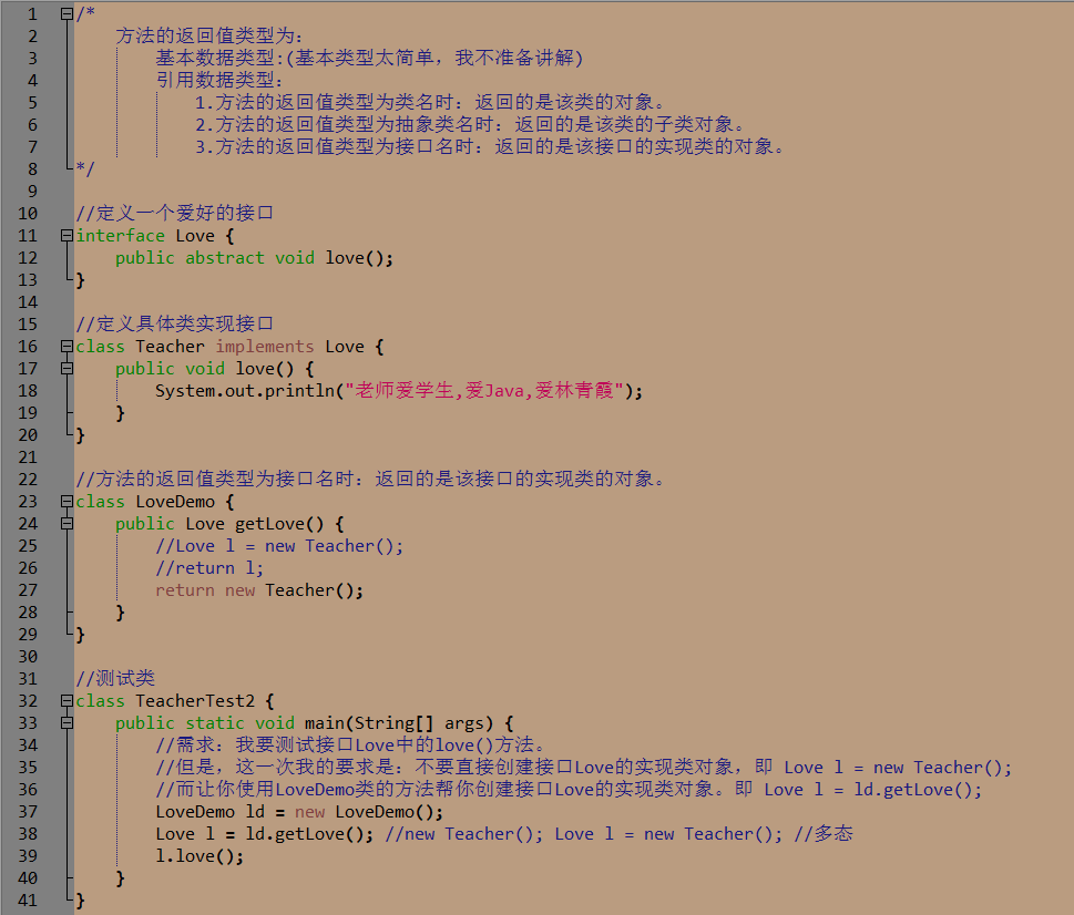 3.方法的返回值类型为接口名时:返回的是该接口的实现类的对象。