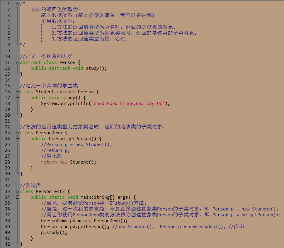 2.方法的返回值类型为抽象类名时:返回的是该类的子类对象。