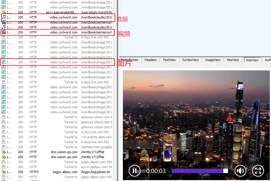 (注意:在抓取特定的图片或者视频是一定要在第一次打开此图片或视频是进行抓取,如果APP预先对所要抓取的图片已经提前进行缓存下载,Fiddler是不能进行抓取的)