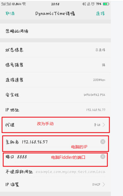 再者要知道fiddler的端口号,Tools-> Options->Connections,port中值就是端口号,一般默认为8888;接下来开始操作手机;