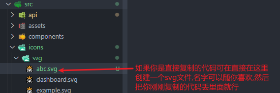 4.它的使用格式<svg-icon icon-class="文件名"/> 。这里的文件名就是在src/icons/svg下的文件名
