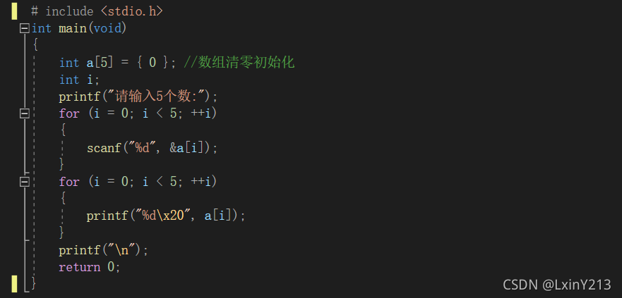也可以用 scanf 手动从键盘对数组进行初始化。