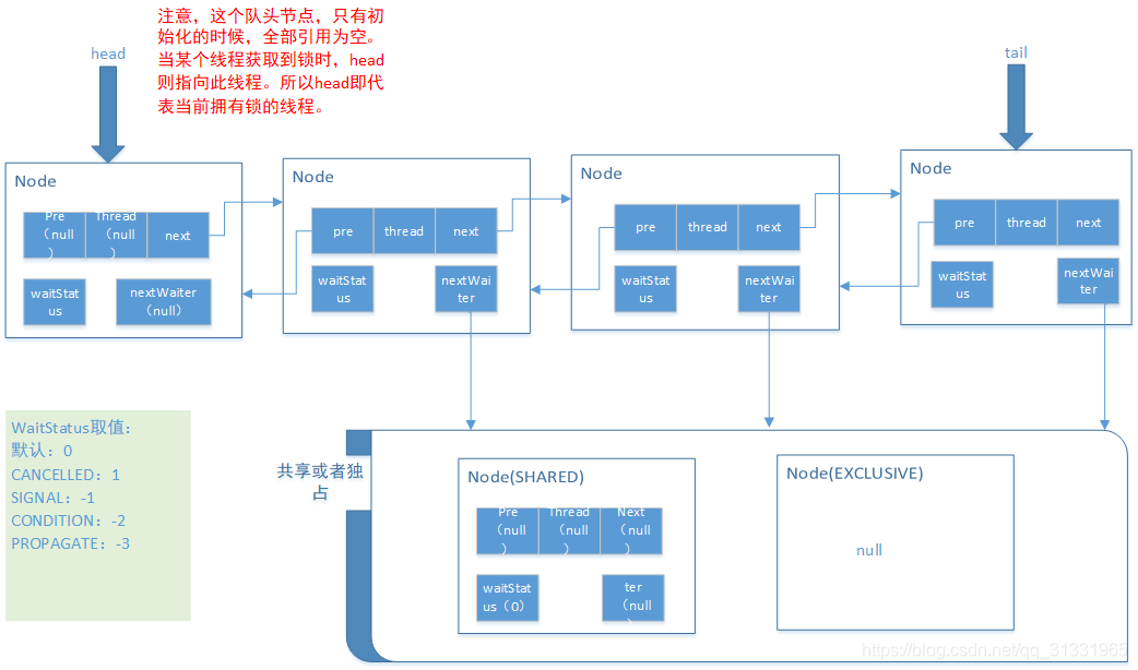 //head存在(不为空),它的waitStatus一定要保证不为CANCELLED(为什么这样限制,后续源码深入分析)。