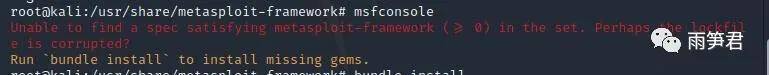 如果此时启动msfconsole,还发现报错的话…请看第四步