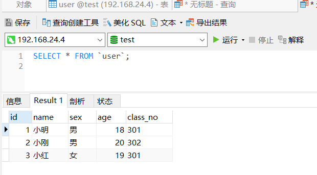 我们这有一张很简单的表user,其中id为自增主键: