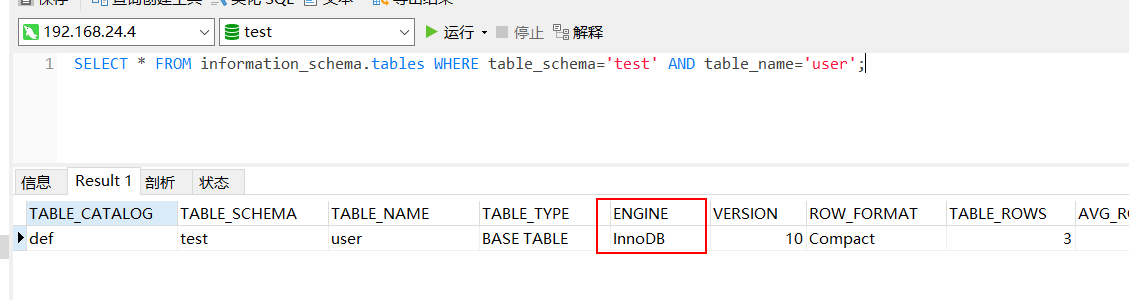 user表中只有3条条记录,其id的值分别是1,2,3,存储引擎使用的是默认的InnoDB,下面的