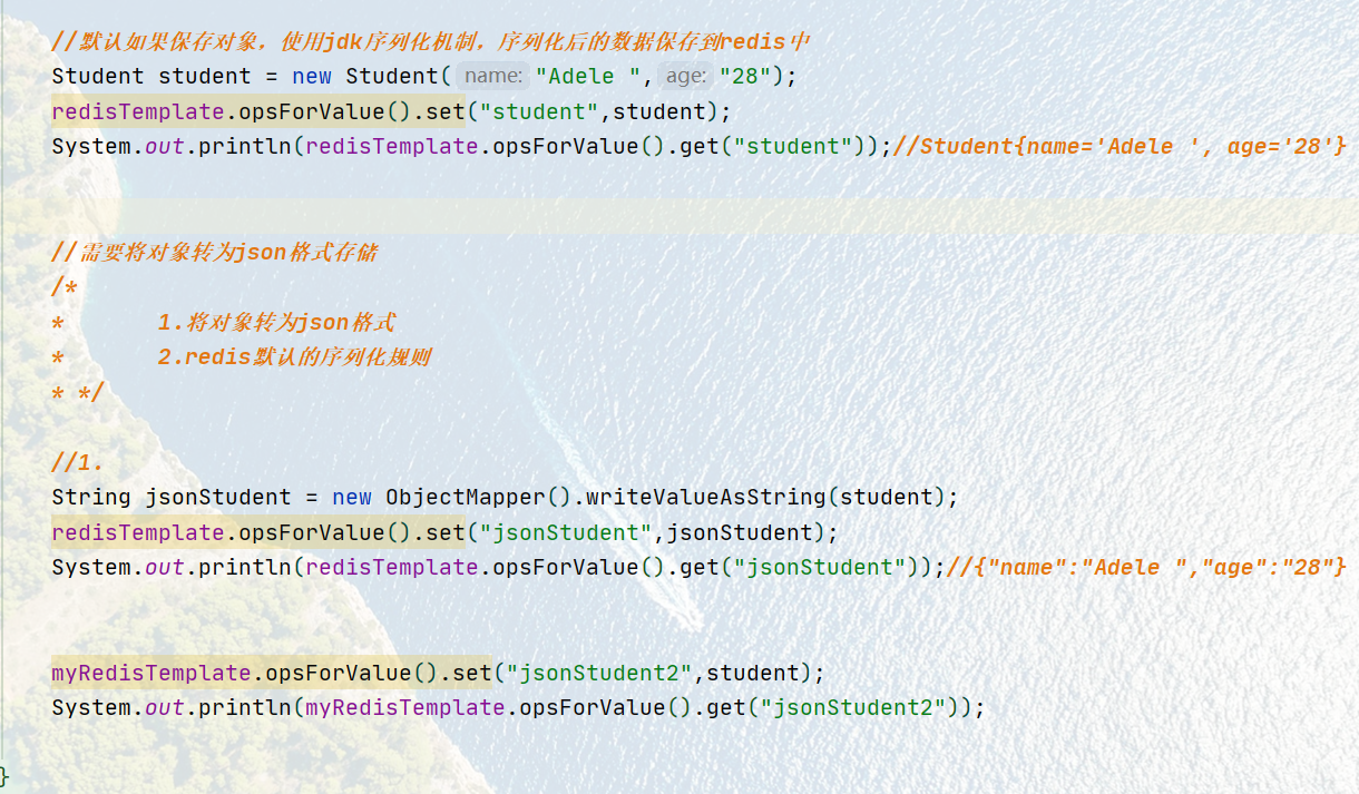 System.out.println(redisTemplate.opsForValue().get("jsonStudent"));//{"name":"Adele ","age":"28"}