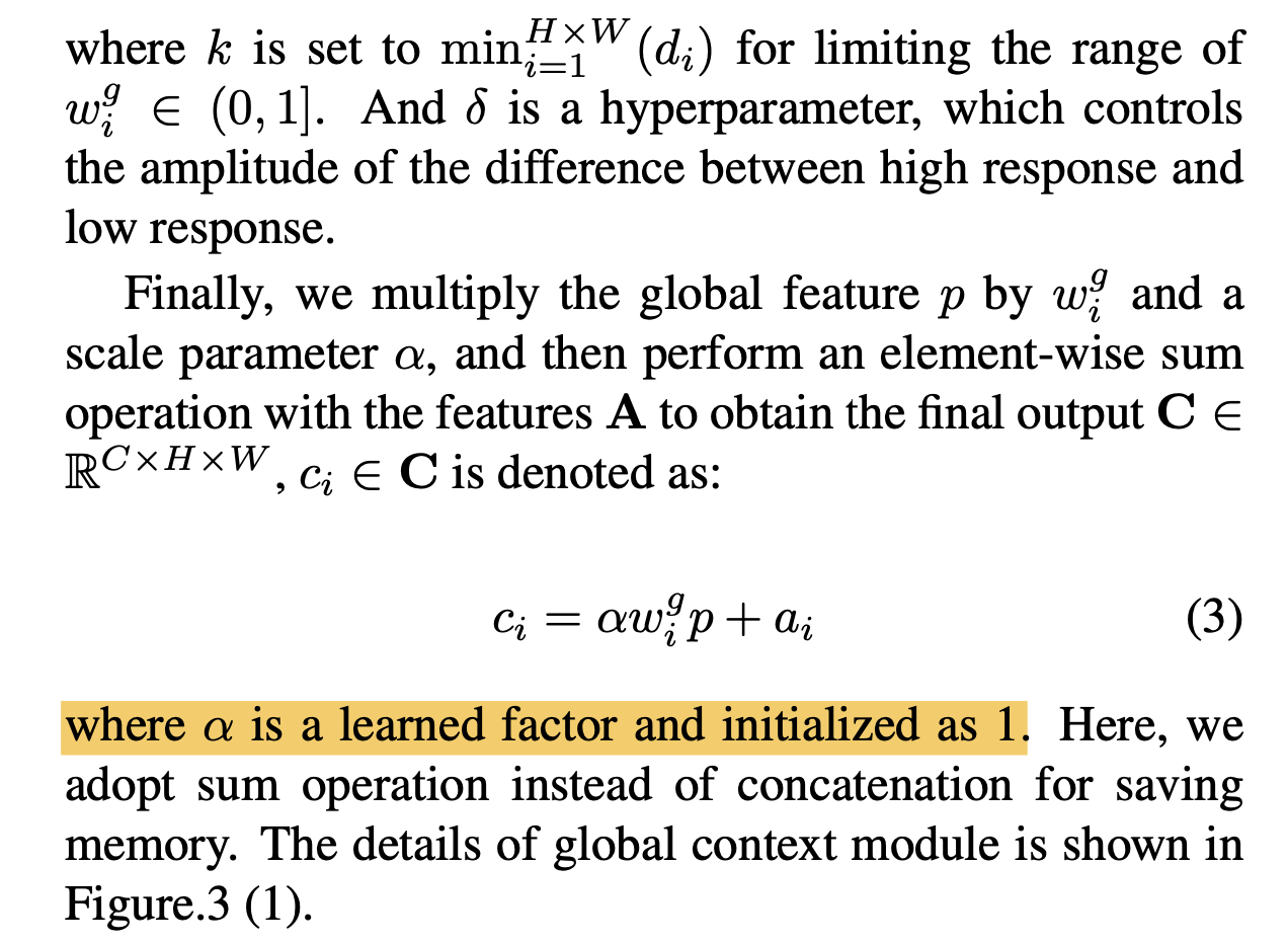 在feature 中对于全局上下文和局部上下文引入不同的权重。