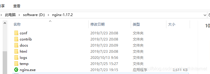 2. set NGINX_DIR=D:\nginx-1.17.2\ //nginx安装的目录文件,我的目录文件如下图所示: